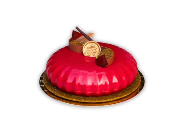 Frambozen bavaroise, frambozencompote, frambozencrémeux en amandelcake.